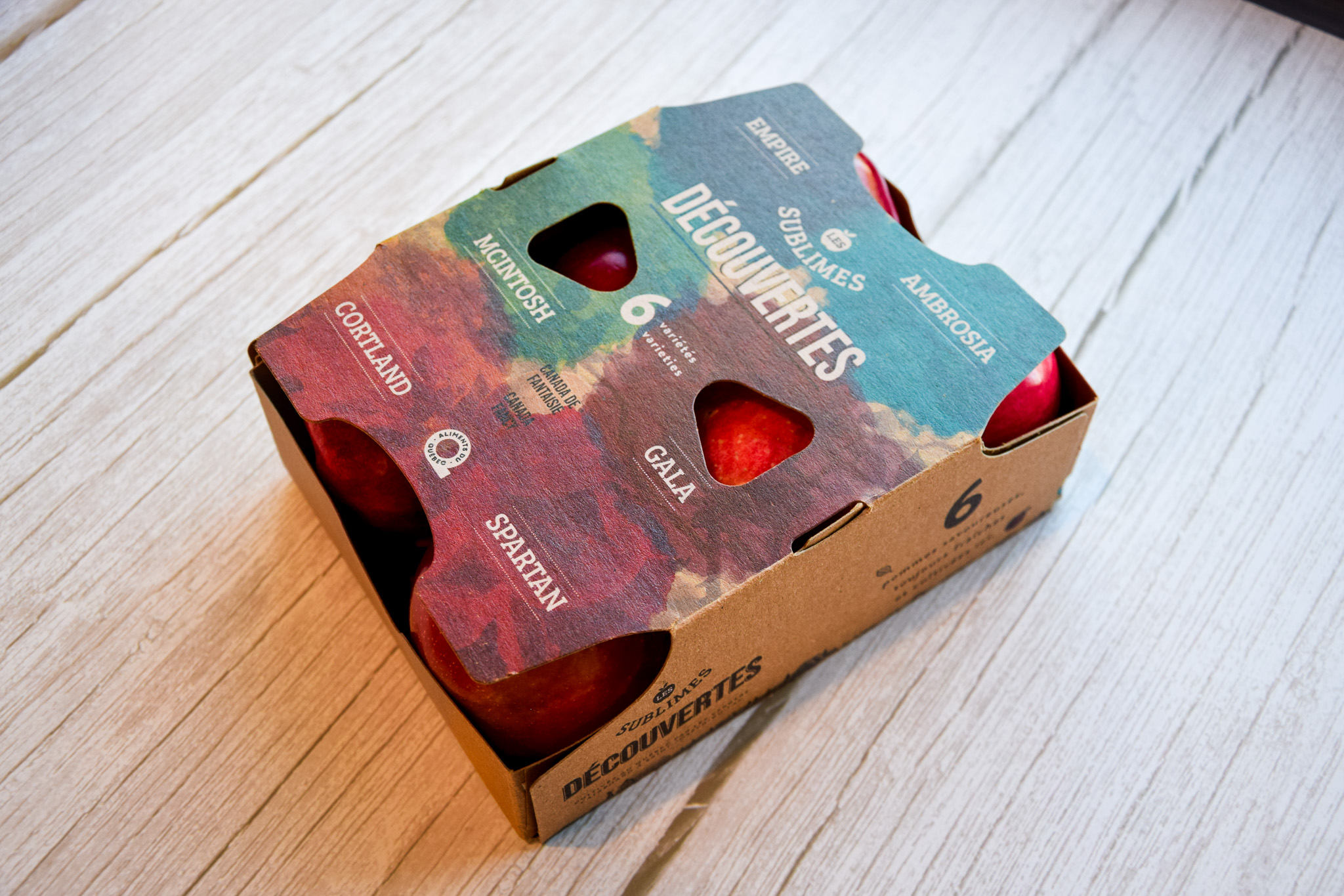Dans un écrin cartonné recyclable, pensé avec soin pour l’environnement, Les Sublimes révèlent six pommes d’exception.