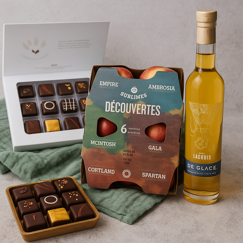 Les Sublimes Découvertes sont notre coffret prestige, pensé pour ceux qui aiment explorer les saveurs authentiques du Québec. Présentée dans une boîte recyclable et écoresponsable, cette sélection de 6 pommes — McIntosh, Spartan, Empire, Cortland, Ambrosia et Gala — offre une dégustation exceptionnelle. Chaque variété est accompagnée d’une fiche expliquant son niveau de sucre, d’acidité et ses usages culinaires. Une invitation à savourer la richesse de notre terroir, dans un format élégant et raffiné.